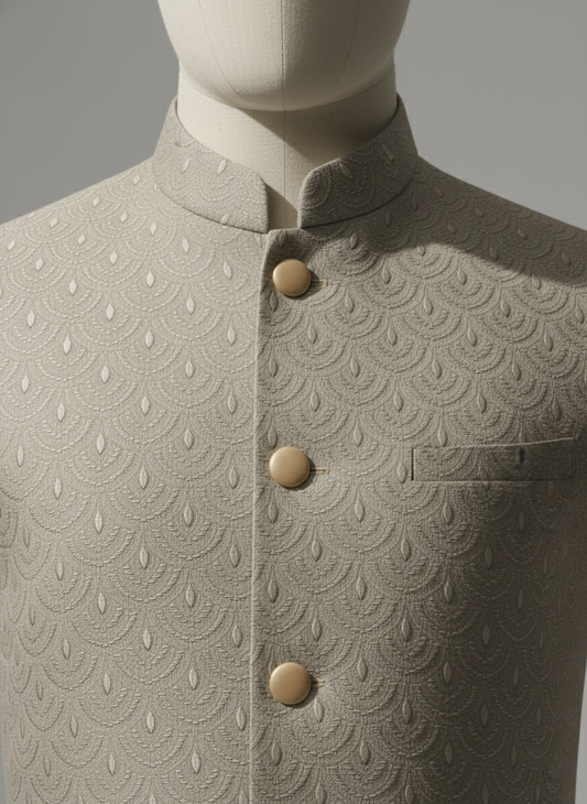 Beige Waist Coat & Off White Kurta Pajama